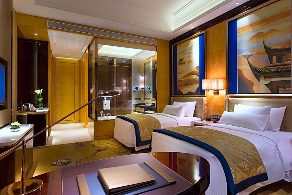 At Wanda Vista Changsha, you'll be treated to a range of amenities designed for relaxation and indulgence. Unwind in the spa and wellness facilities, including the steam room, sauna, and hot tub. Take a dip in the indoor swimming pool and revel in the breathtaking river view. The hotel also offers a fitness center for those who want to stay active during their trip. In the evening, enjoy live music performances at the hotel's bar, adding a touch of entertainment to your stay.